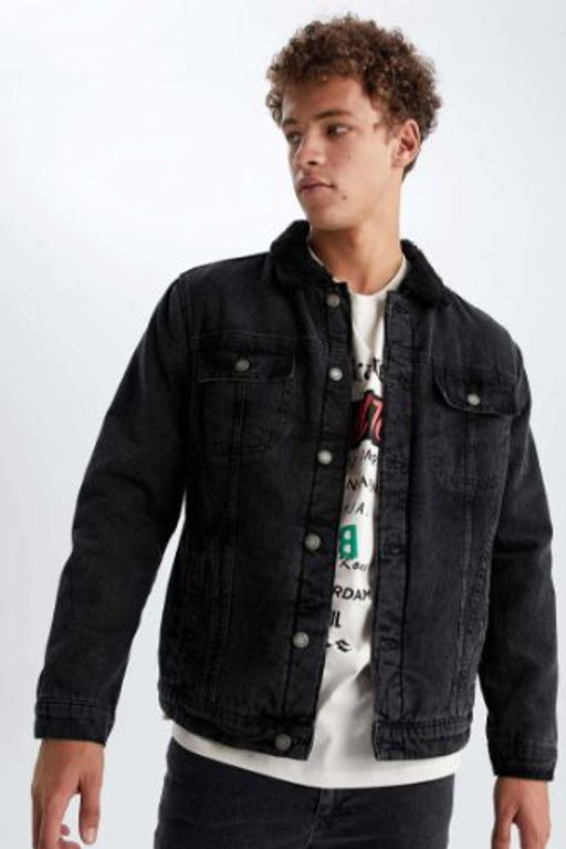 Slim Fit Dar Kesim Suni Kurklu Yaka Jean Ceket