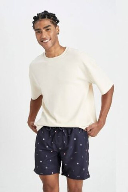 Regular Fit Desenli File Astarl? K?sa Boy Deniz Sortu