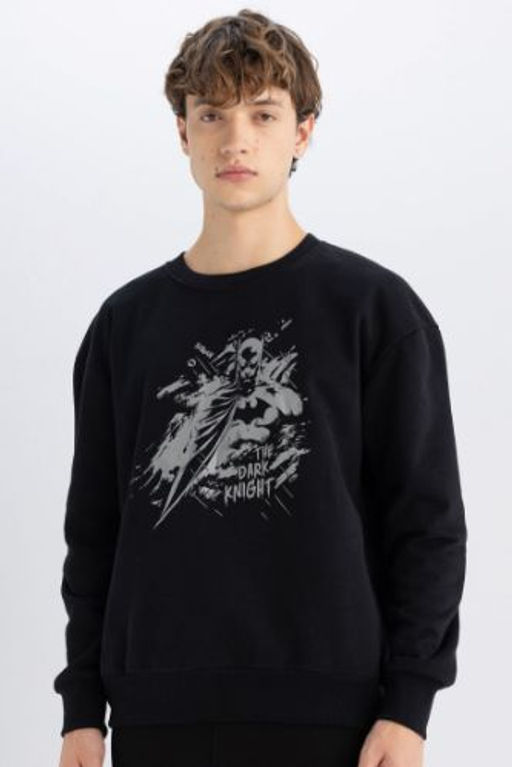 Batman Boxy Fit Bisiklet Yaka Bask?l? Kal?n Sweatshirt