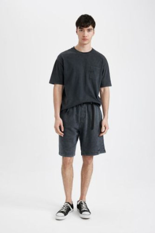 Oversize Genis Kal?p Y?kamal? Soluk Efektli Cepli Duz Paca Sort