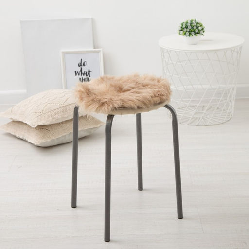 Сидушка на стул меховая Доляна "Пушинка" цв.бежевый d 30 cm,100% п/э