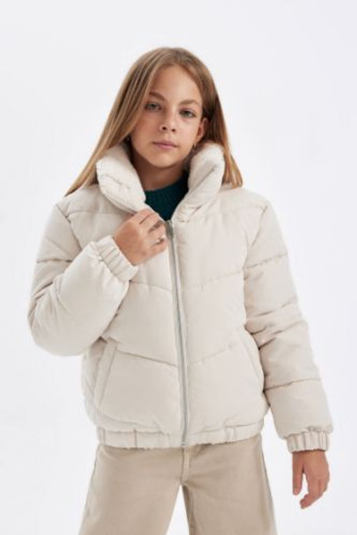 K?z Cocuk Dik Yaka Pelus Astarl? Fermuarl? Sisme Mont