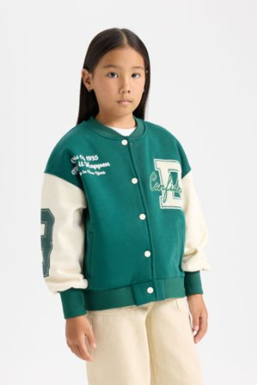 K?z Cocuk Kolej Yaka C?tc?t Kapamal? Cepli Mevsimlik Hafif Bask?l? Kal?n Ici Yumusak Tuylu Bomber H?rka