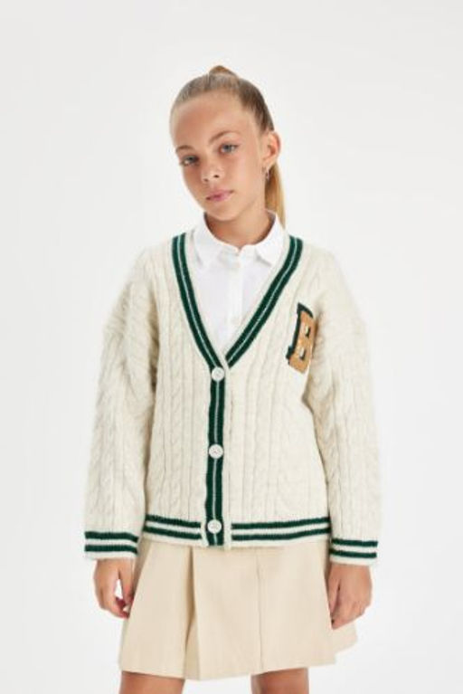 K?z Cocuk Triko V Yaka Dugme Kapaml? Okul H?rkas?