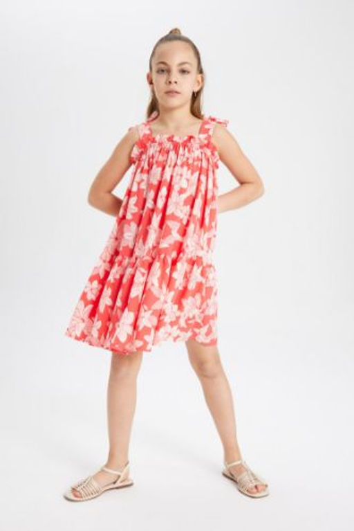 K?z Cocuk Ask?l? Cicek Desenli Elbise