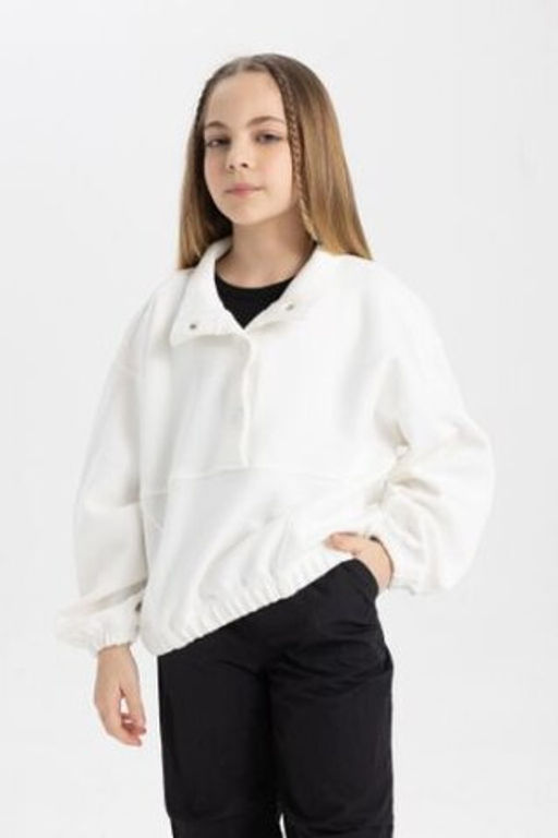 K?z Cocuk Oversize Genis Kal?p Polo Yaka Dugmeli Sweatshirt