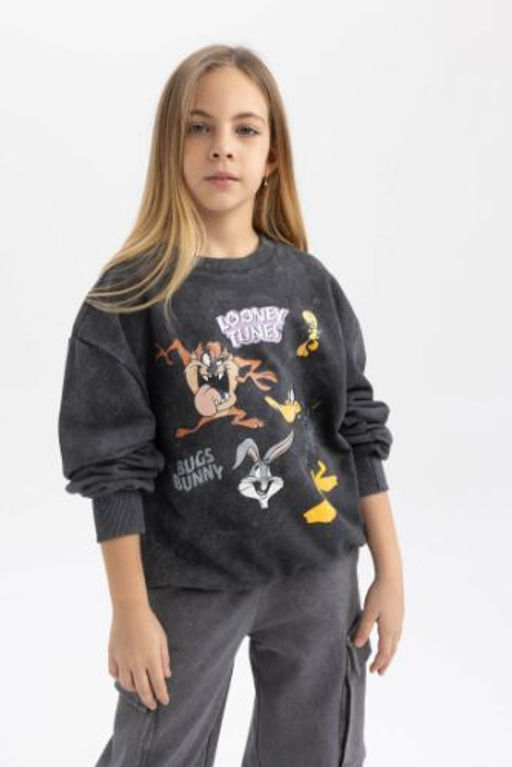 K?z Cocuk Looney Tunes Oversize Genis Kal?p Bisiklet Yaka Sweatshirt