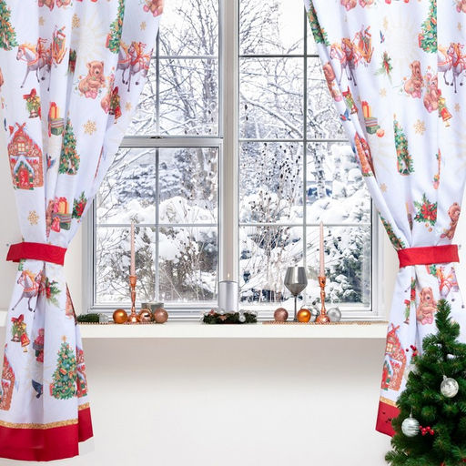 Комплект штор для кухни с подхватами Новогодняя сказка 145х180см-2 шт., габардин