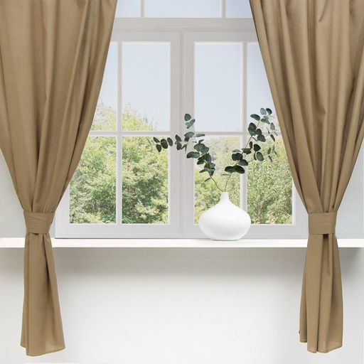 Шторы для кухни Этель ECO, цвет оливковый, 130 +/-6 х180 см - 2 шт, подхваты - 2 шт, 70% хл, 30% лён