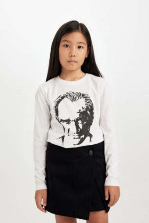 K?z Cocuk Bisiklet Yaka Ataturk Bask?l? Uzun Kollu Tisort