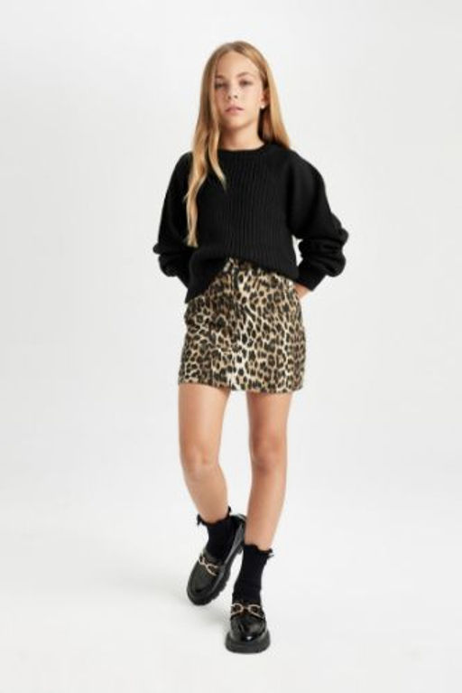 K?z Cocuk Leopar Desenli Cepli Gabardin Etek