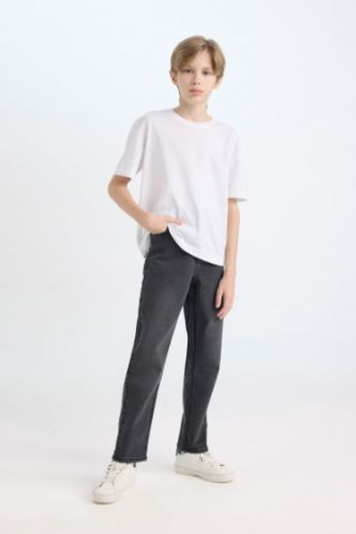 Erkek Cocuk Loose Fit Duz Paca Cepli Jean Pantolon