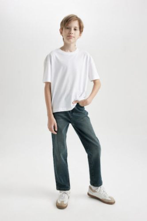 Erkek Cocuk Straight Fit Duz Paca Cepli Jean Pantolon