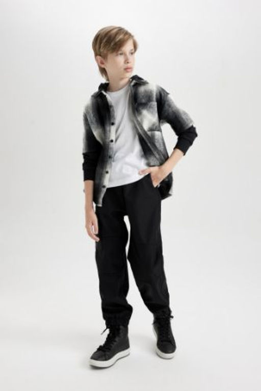 Erkek Cocuk Beli ve Pacas? Lastikli Kargo Cepli Pelus Polar Astarl? Siyah Jogger Pantolon