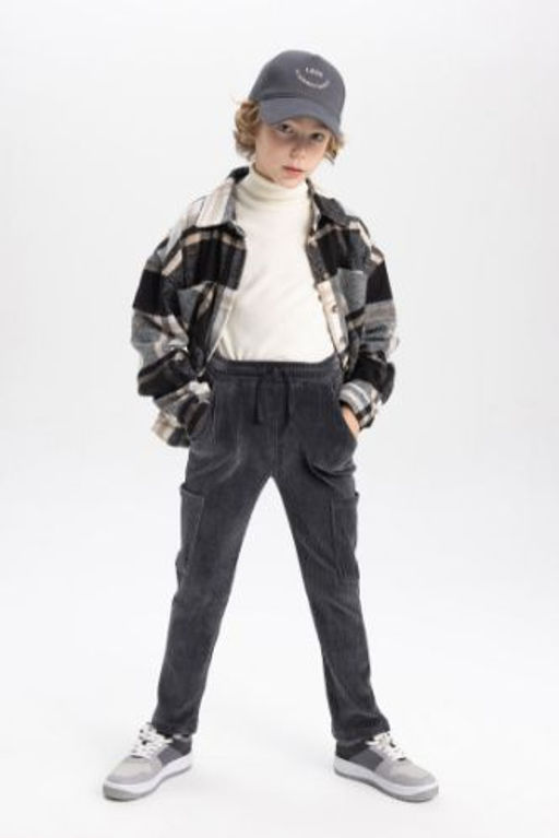 Erkek Cocuk Kargo Fit Standart Paca Fitilli Kadife Pantolon