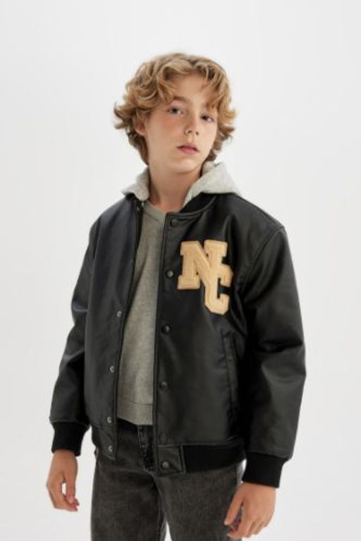 Erkek Cocuk Su Itici C?kar?labilir Kapusonlu C?tc?t Kapamal? Cift Cepli Kolej Yaka Suni Deri Bomber Hafif Mont