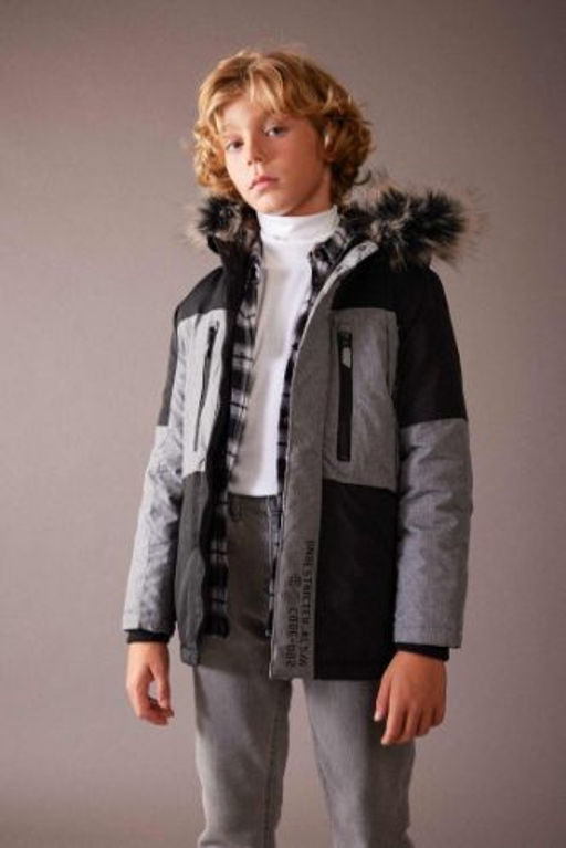 Erkek Cocuk Su Itici Kapusonlu C?kar?labilir Suni Kurk Polar Astarl? Sisme Kaban
