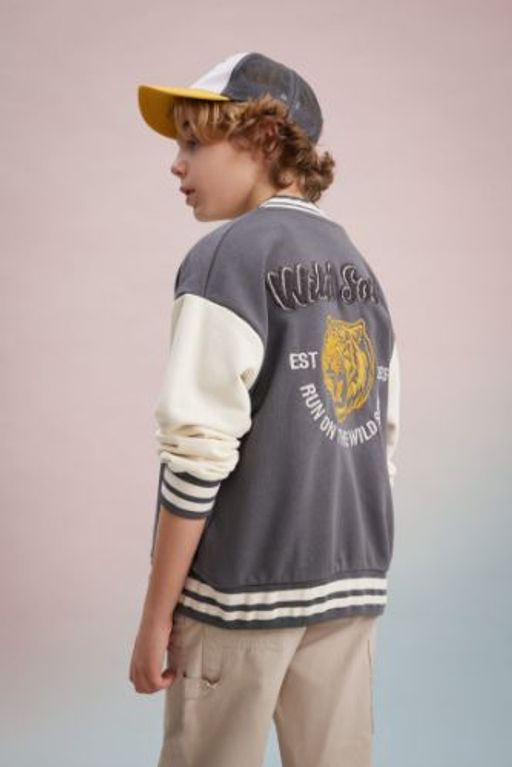 Erkek Cocuk Kolej Yaka C?tc?t Kapamal? Cepli Mevsimlik S?rt Bask?l? Bomber H?rka