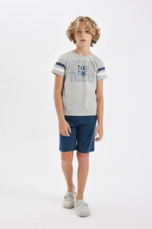 Erkek Cocuk Pijama Tak?m? Bisiklet Yaka Bask?l? K?sa Kollu Sortlu