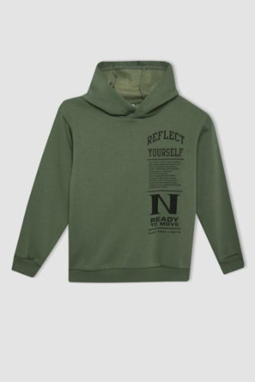 Erkek Cocuk Haki Bask?l? Kapusonlu Sweatshirt