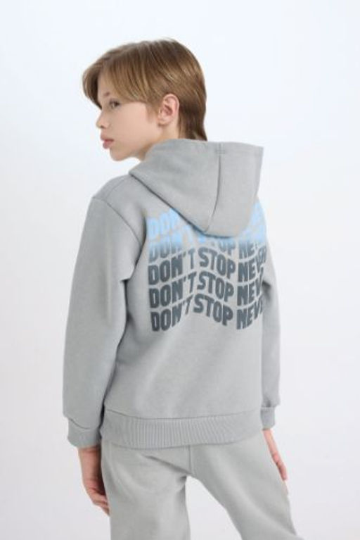 Erkek Cocuk Gri Kapusonlu S?rt Bask?l? Sweatshirt