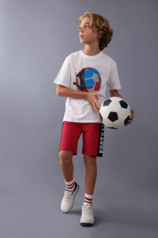 Erkek Cocuk Bisiklet Yaka Bask?l? K?sa Kollu Tisort