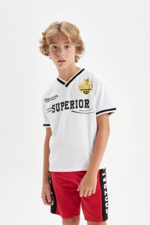 Erkek Cocuk V Yaka Bask?l? K?sa Kollu Tisort