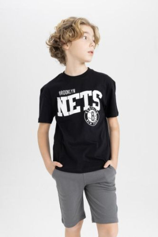 Erkek Cocuk NBA Brooklyn Nets Oversize Genis Kal?p Bisiklet Yaka K?sa Kollu Tisort