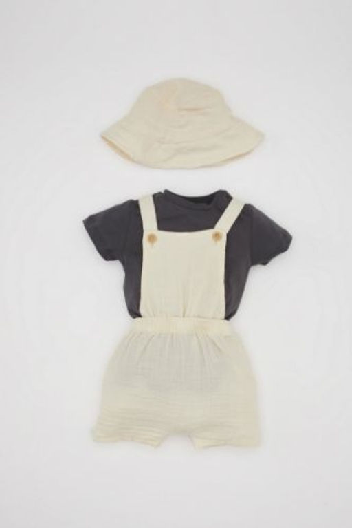 Erkek Bebek K?sa Kollu Tisort Salopet Sapka Muslin 3lu Tak?m