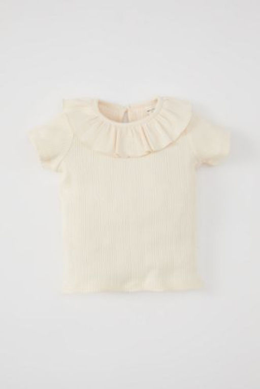 K?z Bebek Fitilli Kaskorse F?rf?rl? Yaka K?sa Kollu Tisort