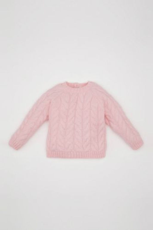 K?z Bebek Ac?k Pembe Bisiklet Yaka Orgu Desenli Triko Kazak