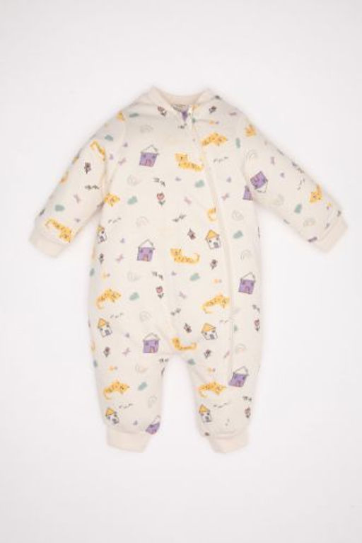 K?z Bebek Yeni Dogan Krem 1 Tog Elyaf Desenli Fermuarl? Penye Uzun Kollu Uyku Tulumu