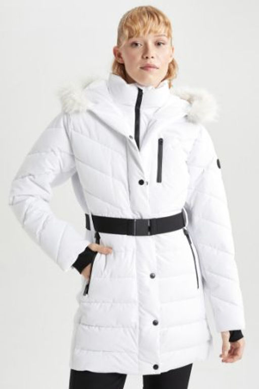 DeFactoFit Su Itici Sisme Mont Parka Slim Fit Dar Kesim Kapusonlu Kemerli Cepli Fermuarl?