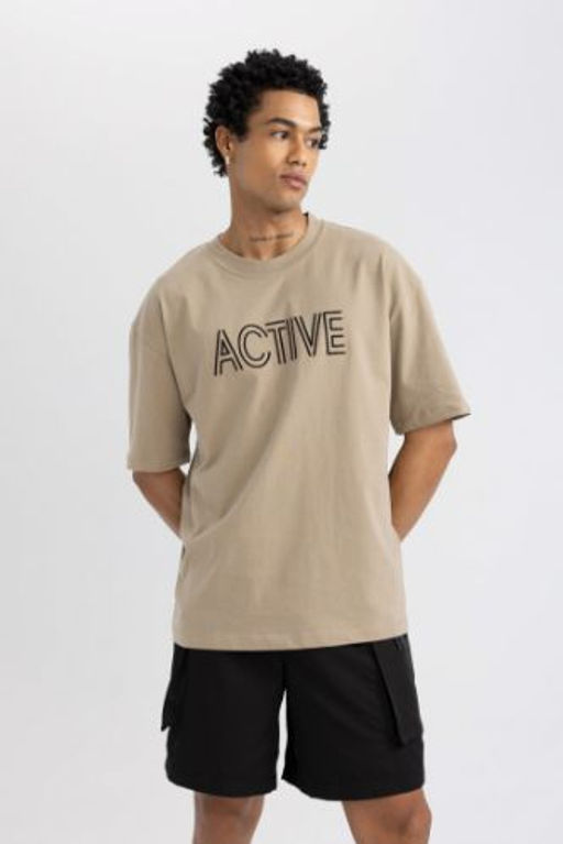 DeFactoFit Oversize Fit Bisiklet Yaka Nak?sl? K?sa Kollu Tisort