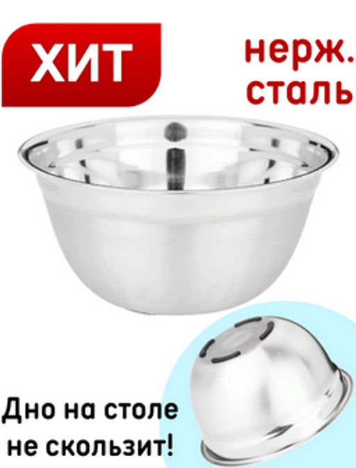 МИСКА AGNESS ГЛУБОКАЯ, НЕРЖ СТАЛЬ, ПРОТИВОСКОЛЬЗЯЩЕЕ ДНО, 18 СМ 1 Л
