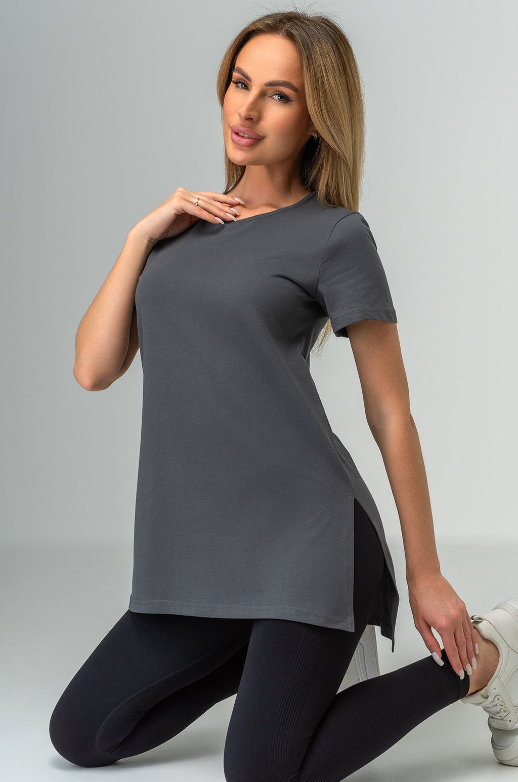Удлиненная женская футболка с разрезами Happyfox