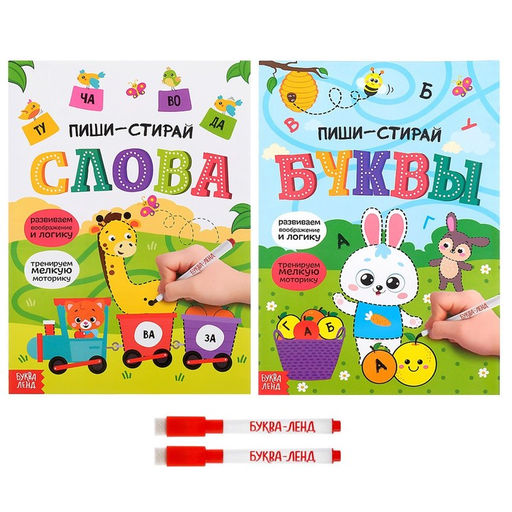 Обучающие книги с маркером Пиши-стирай. Слова и буквы, 2 шт. по 12 стр.