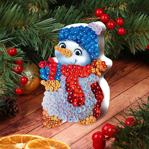 Аппликация пайетками Снеговик