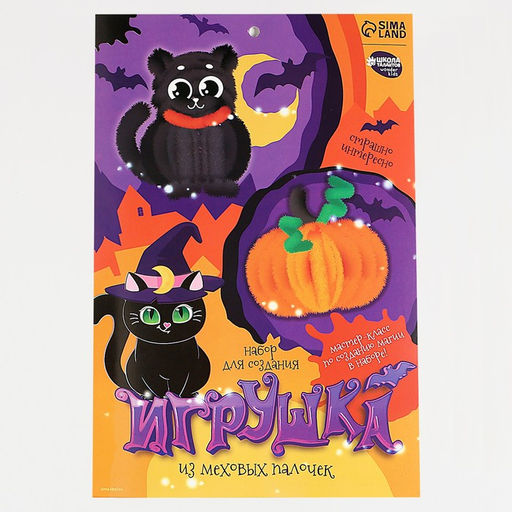 Набор для создания игрушки из меховых палочек Тыква и черный кот