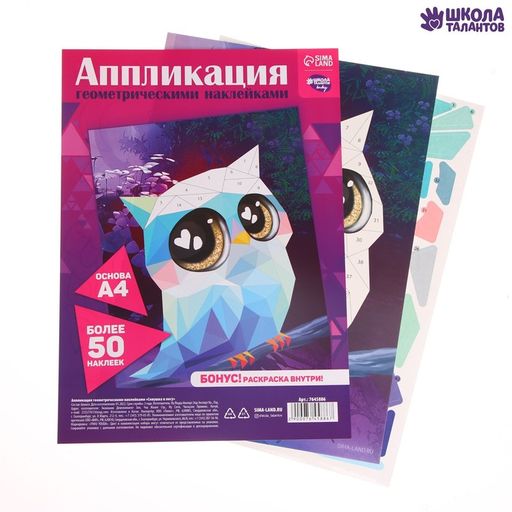 Аппликации геометрическими наклейками Совушка в лесу 21х29.7см