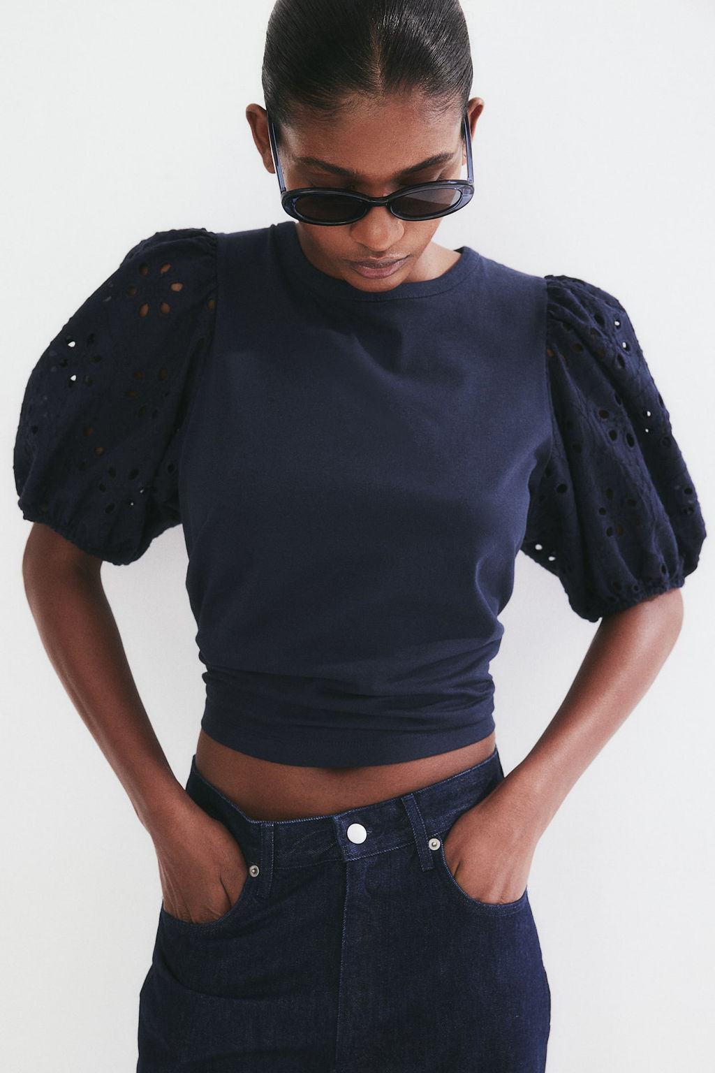 Top con mangas con bordado ingles