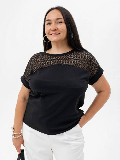 Футболкас КРУЖЕВОМ хлопок 95%, лайкра 5%,черная