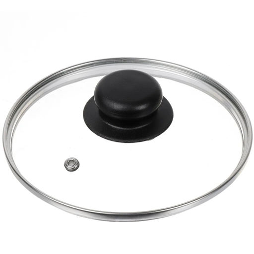 Крышка для посуды стекло, 16 см, Daniks, металлический обод, кнопка бакелит, черная, Д4116Ч (430299) /DANIKS/