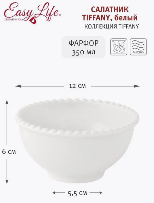 Пиала, 12х6 см, 350 мл, фарфор P, белая, Бусины, Tiffany White