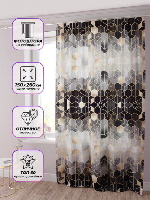 Фотоштора Шестиугольники на сером