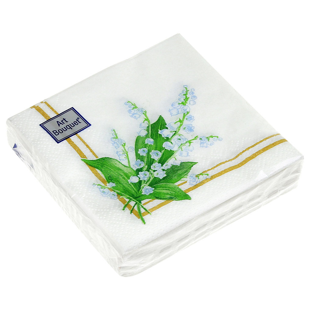 Салфетки бумажные "Art Bouquet" 20х20см, 2-х слойные, 30 штук в упаковке, 100% целлюлоза, "Ландыши" (Россия)