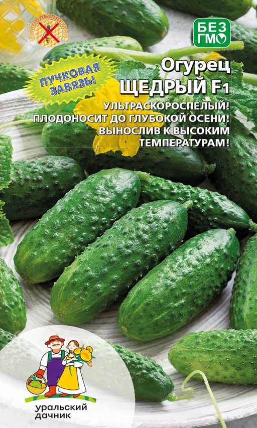 Огурец ЩЕДРЫЙ F1 Ультраскороспелый! Пучковая завязь! Плодоносит до глубокой осени! Вынослив к высоким температурам!