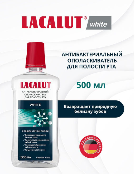 White антибактериальный ополаскиватель для полости рта, 500 мл LACALUT/Лакалют