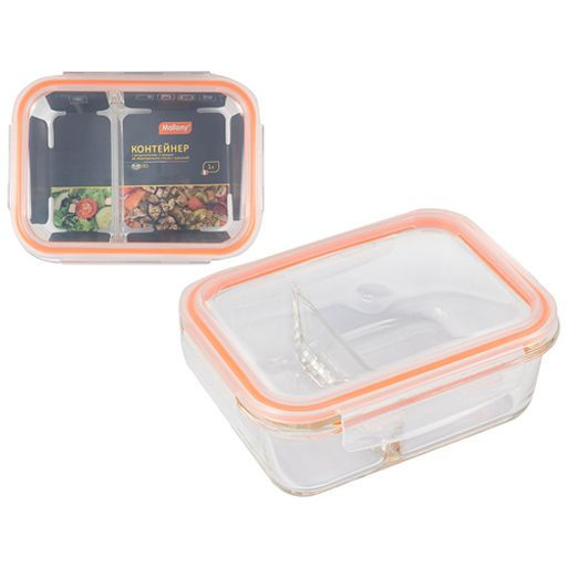 Контейнер GUSTO,1000 мл, 2 секц., из жароп. стекла с кр.с защёлками, темп.режим -40 +300С арт008677