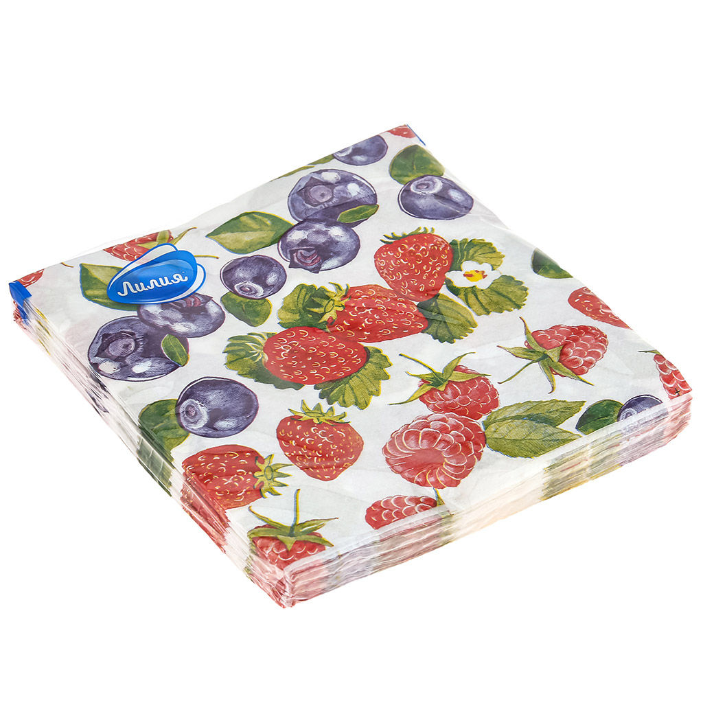 Салфетки бумажные 33х33см "Лилия", 2-х слойные, 20 штук в упаковке, "Ягодный фреш" (Россия)